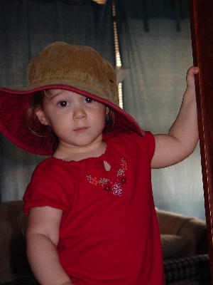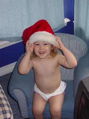 02/26/05 - Kaira discovered a Santa hat while we were rummaging through some stuff in the garage, and wore it around the house for the afternoon.