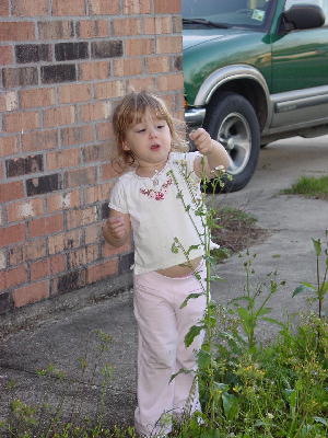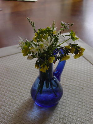 02/16/05 - Picking wildflowers from the yard, and the finished wildflower bouquet