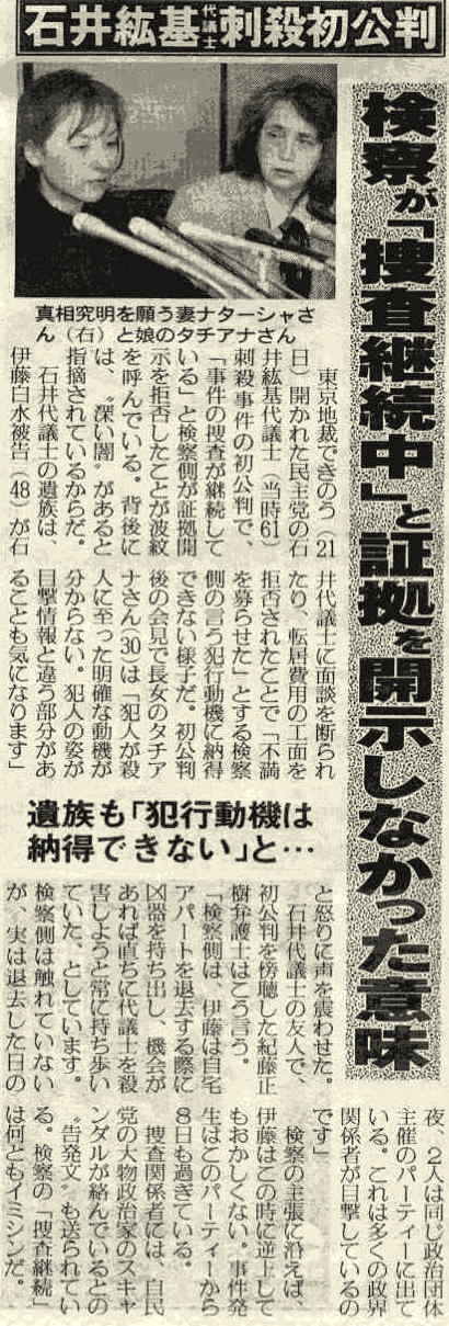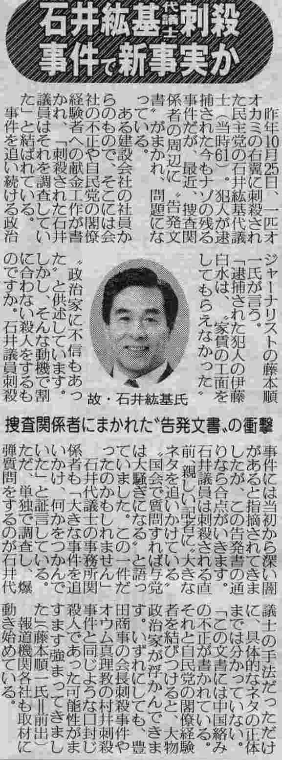 石井紘基議員が家賃を貸してくれなかったから刺殺(恐喝ではなく一撃刺殺!)したなどという記事をどんな風に本当らしく味付けしていくのだろう。