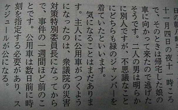 本日、また刺殺理由が変更されますた。