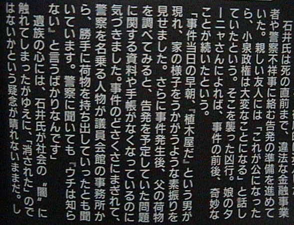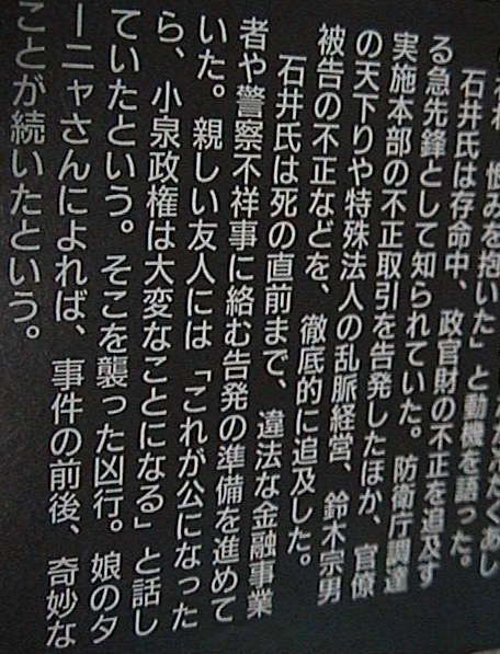 ・利権阻止の石井紘基議員はなぜ刺殺されたのか。
