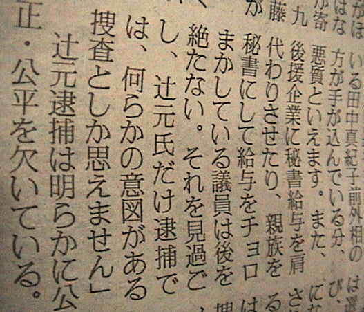 辻元清美の逮捕は秘書給与がどうのこうのなどという戯けた理由ではない。 この国を人殺しの利権産業で埋め尽くしたあの時代への回帰を、断固として拒否した社民党の女性議員にありとあらゆる攻撃が絶え間なく続けられていたのだ。執拗な攻撃の延長線上にこの逮捕は策定されていた。 イカれた教祖に縋ってイカれた妄想を膨らませて行ったイカれた時代のイカれた男たちのイカれた末裔たちが辻元・社民党に対して次から次へとどす黒い攻撃を続けてきた。この男たちの利権が狙いを定めていたのは言うまでもなく憲法第9条である。戦後60数年、平和を切り裂き、憎悪を煽ることでしか機能しない病的な利権構造の中でイカれた男たちが腐臭を放ちながら増殖して来た。 来る日も来る日も辻元清美たちは、こういうおとこたちとたたかわなければならなかったのだ。 戦後、既成利権のことごとくを食い潰して来た男たちにはあの時代と同じように軍事利権しか残されていない。辻元清美が売り飛ばされた巨大な闇の先である。だが本当に売り渡されたのは日本国民の未来だ。 辻元清美が不当に逮捕された理由のほんの一端がここに書かれている。 |
