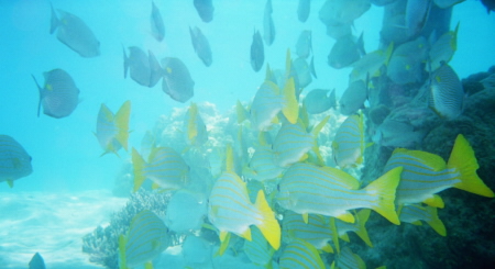 big ones. We saw parrot fish that were 2 foot long, a trevally, a cool 4 foot