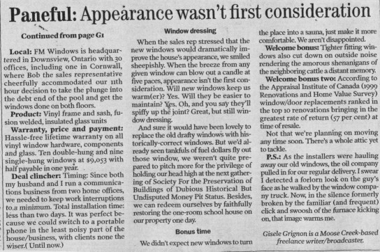 The following Homes articles are examples of the 1,000-plus published articles, and 500 columns Gisele Grignon has sold to print and broadcast markets in Canada and the U.S.