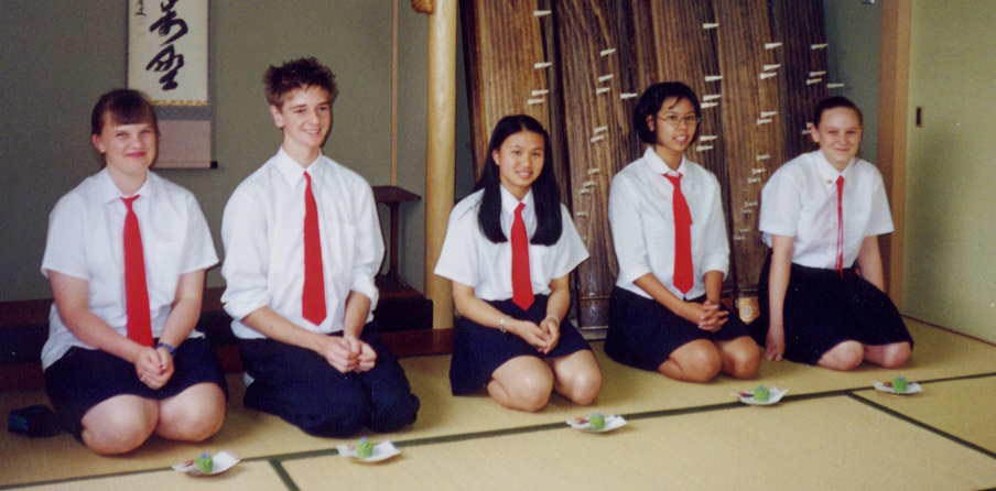 On one of the last days we were in Japan, we all participated in a tea ceremony, that was performed by some of the Mikage students. While the tea ceremony is being performed, you are suppose to sit like the following students are.
