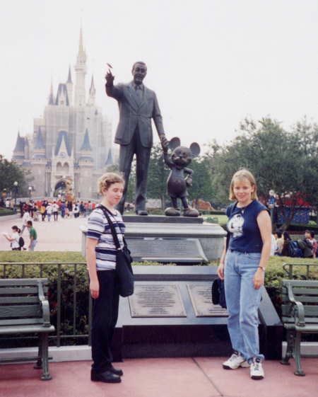 Right at the front of disneyland there is a statue of Walt Disney and Mickey Mouse,