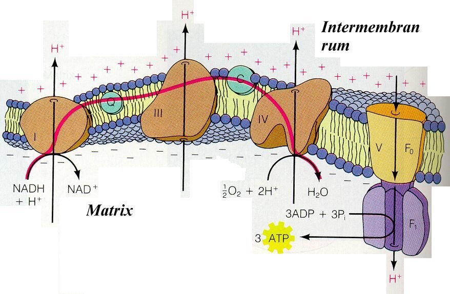 pumpas dessutom vätejoner från matrix till intermembran rum. Detta leder till att en potencialskillnad bildas (membranpotencial). Vätejonkoncentrationen utanför det inre membranet ökar.