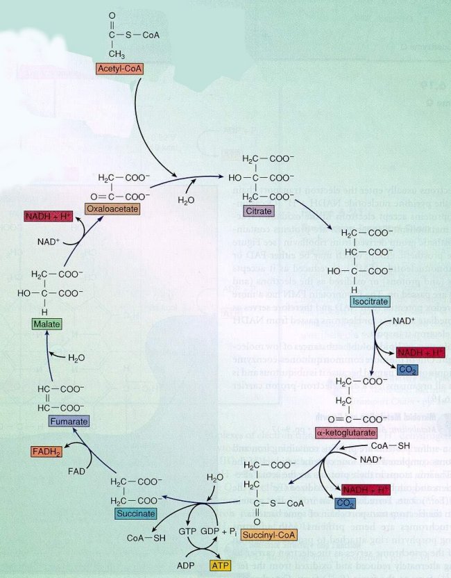 som innehåller 4 kolatomer. Det bildas då en molekyl med 6 kolaromer. I citronsyracykeln kommer två av dessa kolatomer att oxideras bort och lämna cykeln som koldioxid. Resultatet blir en molekyl med 4 kolatomer och cykeln går igen. Koldioxiden lämnar människokroppen via utandningen.
