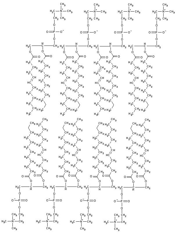 är modifierade fettmolekyler. Den ena fettsyran har här ersatts med en fosfatgrupp (därav namnet fosfo (fosfor) lipid (fett)), till vilken en kolingrupp är bundet.