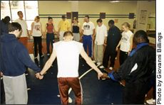 on the head: their coach. Men's and women's head coach Joe Dial's