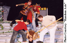 with hats and wigs) and five chairs. The elaborate humor these young