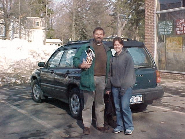 This is Dad and Kelsey standing in front of our car in Rhinebeck. See how dirty it is? Thankfully this day was not bitterly freezing (as it usually is), so Kelsey did not have to wear her wool coat. We were on our way to pick up Kelsey's car from the shop.
