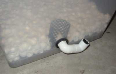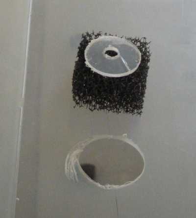 A coarse aquarium sponge replaced a finer one at the drainage outlet pipe. I'm thinking that maybe a little air will prevent the buildup of anaerobic bacteria. Is it effective?? Gee... I don't know either! ;o) |