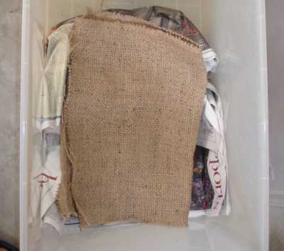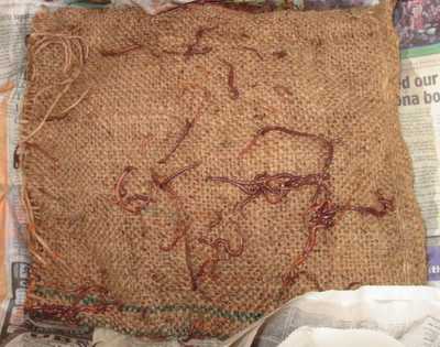 The sack cloth should be damp, not wet, and cover their food. A moist dark surface will encourage the worms to stay near the food. If one is using a black box, one layer of sack cloth will suffice. |