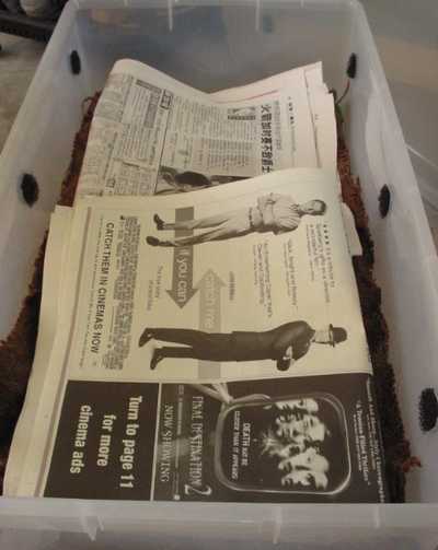 | The worms in their temporary quarters while I was furnishing their new home. |