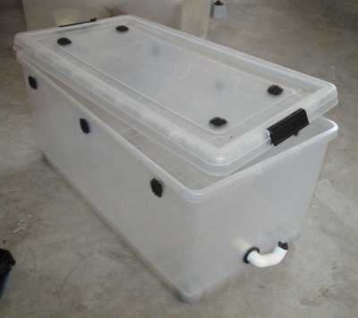 Ok, now I've gotten my worms... what's next? Heh, fickle minded me decided to scrap the previous 'worm-bin' and start anew on a 'Mark II' edition.... Improved and much bigger! ... but nothing is perfect and this translucent storage box does have it's pro & cons.