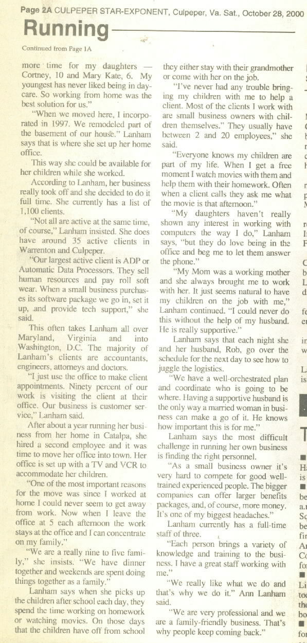 Freelance Writer Linda L. Martin Published Culpeper Star-Exponent Culpeper, Virginia October 28, 2000 Published Fauquier Times Democrat Warrenton, Virginia November 1, 2000 Return to Intro Page