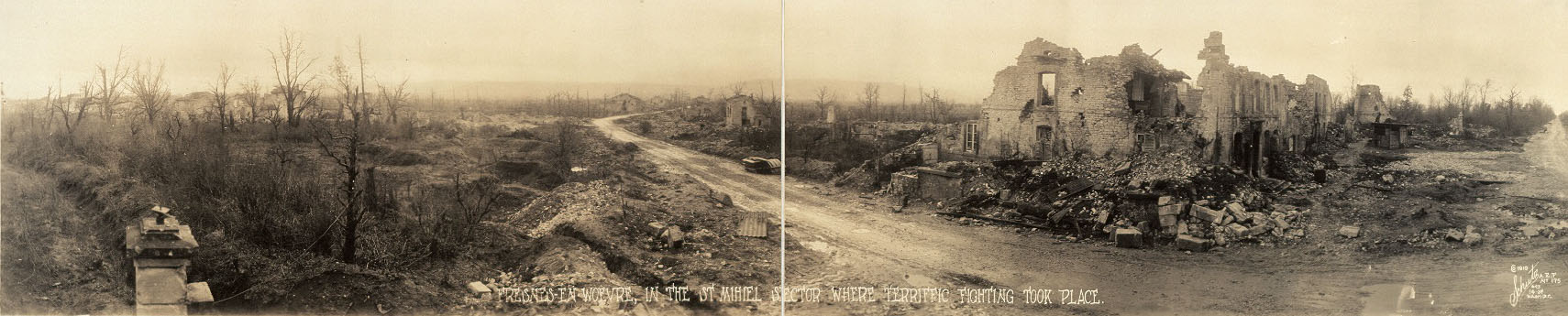 When we were loaded we stayed there about fifteen minutes waiting for the return of the ambulances. As soon as it was seen the ambulances were leaving the dugouts, our driver and helper jumped in and we started off. The appearance of the ambulances was discovered from the German "sausage" or observation balloons and German artillery sought to get the range. The reason for the haste was to get away and on the road before they should succeed. By the time they had the range, the other ambulances were coming and we were on the road driving to the rear on the three or four mile level stretch, all within sight of the enemy observation balloons, driving as if the devil were behind us.