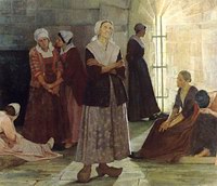 In this last connection, the name could suggest the derogatory inference of superstitious worship; because, ignorant people believed that Huguon, the gate of King Hugo, was haunted by the ghost of Le roi Huguet (regarded by Catholics as an infamous scoundrel), and other spirits who instead of being in purgatory came back to harm the living at night,[4] and it was in this place in Tours that the prétendus réformés ("these supposedly 'reformed'") habitually gathered at night, both for political purposes, and for prayer and to sing the psalms.[5] With similar scorn, some even suggest that the name is derived from les guenon de Hus (the monkeys or apes of Jan Hus)