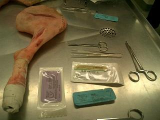 We learn how to suture this dogs leg.