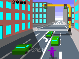 Image 2-1: Not sure where his next destination is, Knuckles literally runs in the street with the traffic, and at the speed the traffic flows. This image is the best of them all. So realistic-looking you can almost be in that area! If you look hard enough, the main character sticks out well in 3D, even the cars!