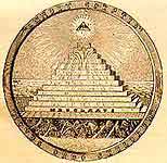 "The glory is the only symbol found on both sides of the Great Seal. A glory emanates from the constellation of stars over the eagle's head, and a glory surrounds an eye in a triangle in the zenith of an unfinished pyramid. "Glory" is a heraldic term for a circle of rays, an emanation of light — gold or yellow in color — similar to the halo used by artists to depict angelic beings... From the beginning, then, the founders emphasized the importance of this divine light by including it on both sides of their initial design. They also incorporated a glory (or similar element) into both sides of the subsequent designs submitted by the second and third committees."