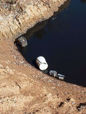 When Chevron drilled the new well, they dug this big water pit. When they are through drilling a well, they are supposed to pump all the drill water ingredients out of the pit, and close it up. However, as you can see, it it still here. And, they are starting to use it as a trash dump.
