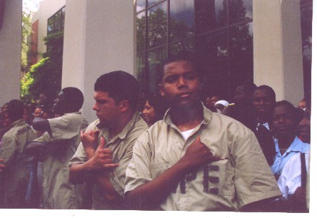 Escorted from Wharton Hall to the Union porch for the Probate Show by Bros. Evans, Carmouche, and Rochon