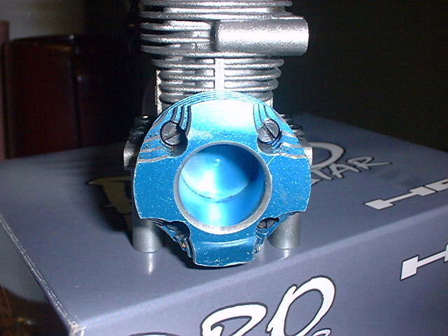 This is the O.S. RG-B .21, i was told that when this engine over heats the head changes colors. i have 2 of these engines one is new and one was rebuilt after it had blown up. humm i wonder why it blew? The new one (black) it still a good running engine the (gold) one was once black but was over heated and blew. The gold head was the test engine on most of my engine mods. hey it still runs and runs well.