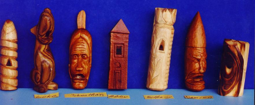 Above and below - whistles he carved for grandchildren & great-grandson.