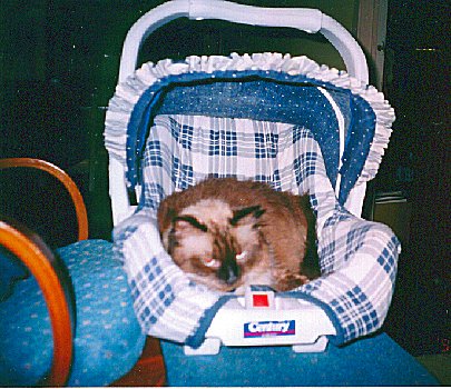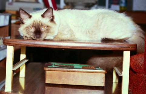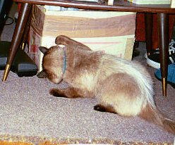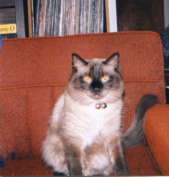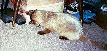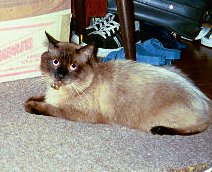 Simon looks like a Siamese but is long-haired.