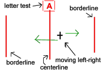 Part one: Coordination test. Done on the same computer as test 1. You have to keep a + sign in the middle of your computer screen. The middle of the screen has a vertical line running from the top of the screen to the bottom of the screen. You have to try to keep that + sign as close as possible to that vertical line in the middle of your screen. You use the mouse to keep the + centered. The difficult thing is that if you want to move the + to the left, you have to move the mouse to the right, and vice versa. Fortunally you get two practice sessions before the actual test starts. The + sign does not move up and down, only left and right. On both the left and right side of your screen are two border lines, and if the + sign goes over one of those lines you start over again. It is very normal for the sign to cross the border lines about 10 or more times during the whole test. If you manage to keep the + sign around the center of the screen and without going over the border lines for 30 seconds or more you are doing great. The + sign is constantly moved left and right at varying speeds by the computer. Your job is to keep it centered with the mouse. The total time for this part is less than 30 minutes.
