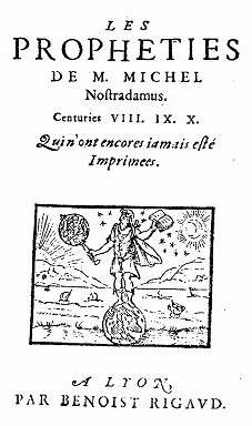 in his book Les Propheties (The Prophecies), published in 1555, 1557, 1558, and 1568