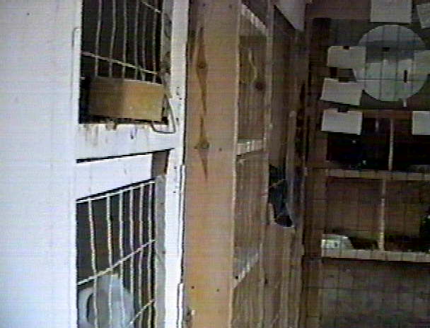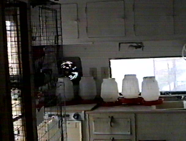 This view looking towards the main breeding section shows the built-in individual breedings pens next to one of the holding pens. The small size of the loft makes it difficult to photograph with a cam-corder, but gives an idea of the layout. You can also see the file cards that I use for record keeping. This info will later be added to my RJ AlmoSt Perfect Record Keeping System.