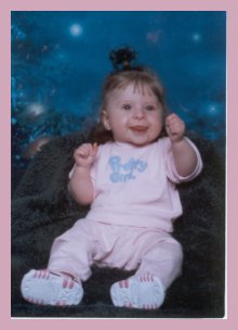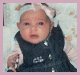 Alivia Marie Belmares was born Jan. 5, 2003. She fell asleep in the Lords arms April 16, 2003. The last day we spent with Alivia, her Grandma said "she's just like a little angel, isn't she?" My reply was "yes, she is a little angel" as I kissed her one last time before walking out the door for work. We always knew she was an angel, we just never knew how close to the truth we really were.