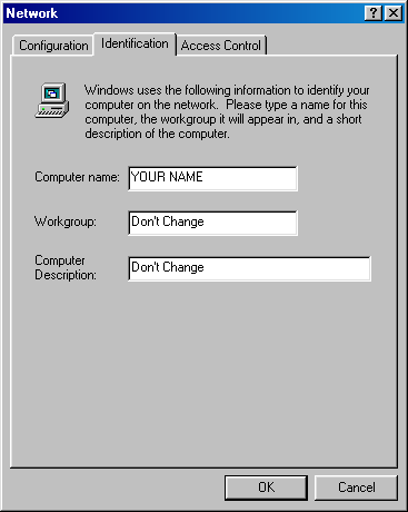 - Go into network setup and change the identification of the machine (to YOUR NAME) to allow it to connect to the network.