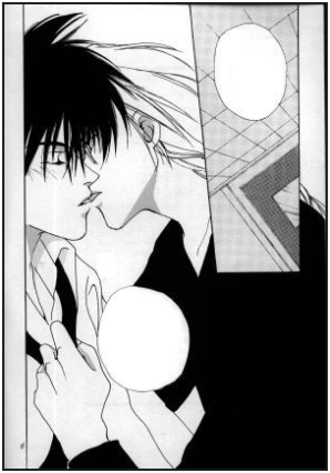 Not very clear if you can’t read japanese. Duo and Heero appear to be reaching an "understanding." When Duo is ready to take to the next level, Heero gets cold feet. Duo fantasizes for a while, then finally knocks on Heero’s door and is surprised to find Heero has changed his mind.