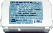 Calcium: This kit measures all types of calcium, including gluconate calcium. The method is based on specific titration with a unique indicator. Measures in increments of 5 mg/L. Runs 150 tests. I maintain: Calcium=475mg/L