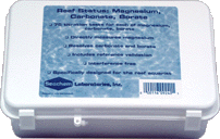 Magnesium,Carbonate/Borate/Total Alkalinity:Four kits in one! Tests for magnesium through a titration based procedure in increments of 12.5 mg/L. Tests for carbonate alkalinity, borate alkalintiy and total alkalinity in 0.1 meq/L resolution through a titration based procedure. The kit resolves borate from carbonate and, along with magnesium, this presents a clear picture of the tank's buffering capacity as well as a very reliable determination of the critical carbonate content required for coral and coraline growth. Each kits run 75 tests. I maintain: Magnesium=1400mg/L