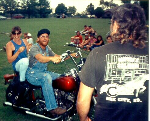 | October 1978 - My 30th birthday party. This is a very drunk me with my "birthday present" (not the bike). |