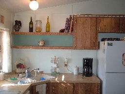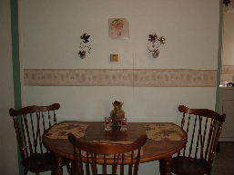Our KitchenWe got rid of the pink and blue flowered wallpaper that just didn't fit our personality. Dean picked out the Kiwi colour, Rebecca picked the trim colour and the border to match. We went with an Italian and fruit theme.All we need to do to finish off the kitchen is new flooring, a bigger fridge/freezer and a new set of pots and pans.