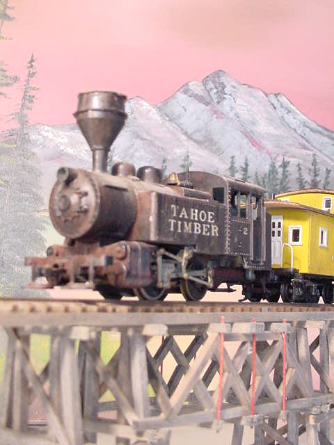 The trestle is "scratch built" the locomotive is a 50 year old Mantua 040 and the caboose is built mostly from wood.