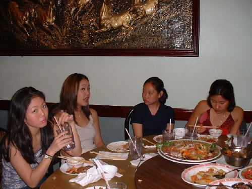 That's Cat (such a typical Cat face..altho I dunno what she's lookin at) me, (such a typical me face too..) Merry, and Elisa at Yuan Ten--CSA restaurant trip!