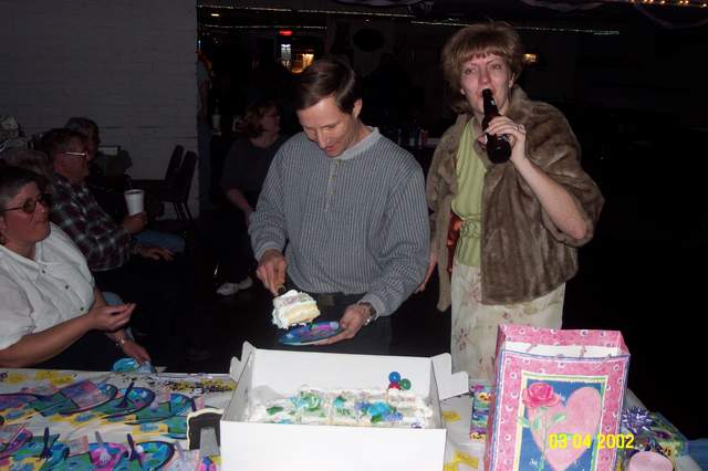 This picture is so damn funny! I laugh everytime I see it! The cardboard guy is substituting for my husband who couldn't make the party. LOL. Don't ya just love the "I'm so Happy, I could just SH*T look on my sister's face? (hint, she is the one to the left of the cardboard dude)