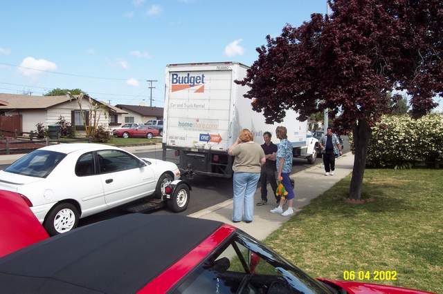 Since my sister was very NERVOUS about driving through the Los Angeles area, my mom drove her van (my sister's van) with my sister and her 2 girls. My dad, me, and my husband followed in my dads car. My sisters husband led the caravan with the moving truck pulling their little white NEON. Once we reached Indio, CA my sister and her family continued on their journey and we (mom,dad, me, and my hubby) turned around and went back home - It was a very emotional moment as we watched them drive off in the other direction on their new adventure. Many tears were shed as we waved to them from the car.
