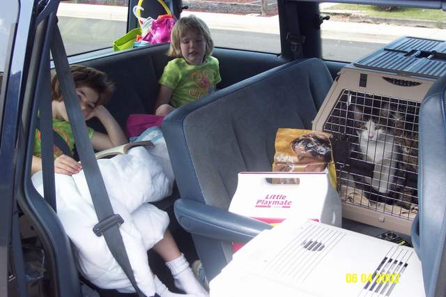 Here are the girls. They are ready to go and so are the cats. From what I heard, the cats traveled very well.