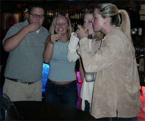 This is Jessica, Jenny, me and Stacie at Raul's after my birthday dinner and before Quinton's. We went there to get a girl scout cookie shot, they're the best. They taste like thin mints.