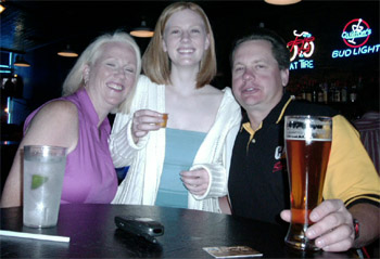 This is me, my mom and my dad, and the shot is a Georgia Peach, on my 21st birthday at Quinton's on Mass St.