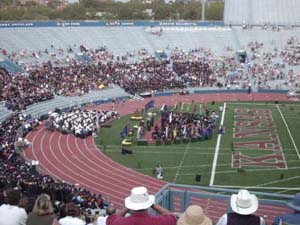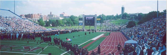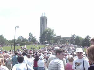This is the view from the bottom of the Hill, once we made it. It's a pretty amazing sight. It's hard to believe that I went to school with all these people. My claim to fame can be that I walked into the stadium next to Nick Collison (and that I got a ride home from him and Hinrich one night from a bar, what nice guys).