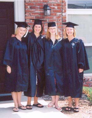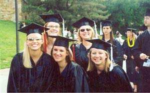 This is Me, Laura, Carly, Janessa, and Jenny at the top of the Hill about to walk through the Campanille at graduation.